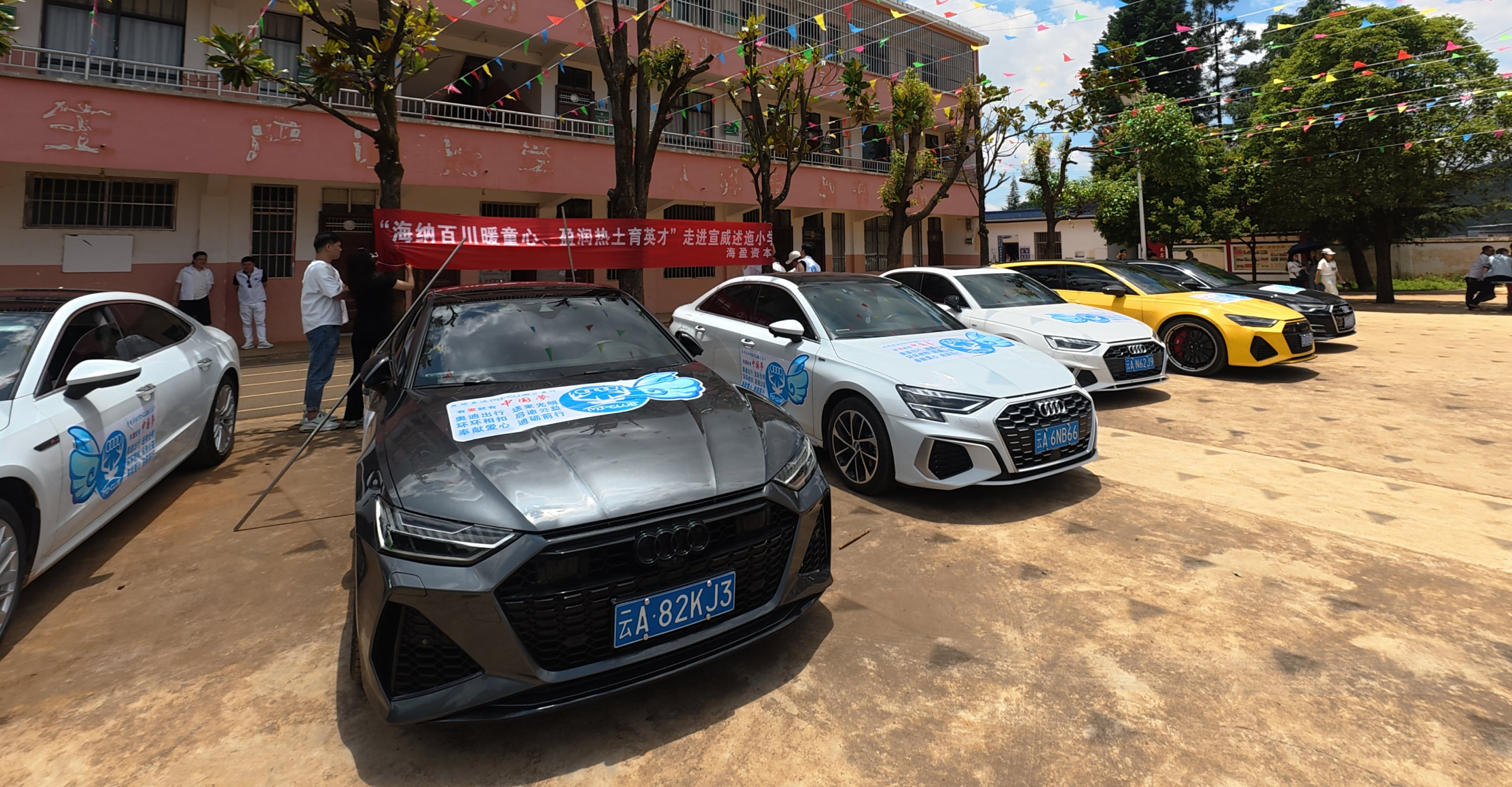 翻开这支“移动爱心驿站”的公益日志,一串温暖有力的数字,记录下三年来奔赴山乡的一系列善举。2022年9月,13辆奥迪车组成首支助学车队,69位车友奔赴楚雄彝族自治州武定县大羊圈村,为其筹集书籍、文具、冬衣等物资;2023年4月,76位车友接力前往昆明德馨实验学校,为特殊儿童送去万元爱心包裹;2024年,增至119人的参与者募得两万余元善款,9辆奥迪车满载教学用具驶入红河哈尼族彝族自治州建水县盘江乡苏租小学;2025年,曲靖宣威市热水镇的助学之行,再次汇聚103位车友,11辆奥迪车承载着两万余元的物资,为述迤村完全小学送去爱心。