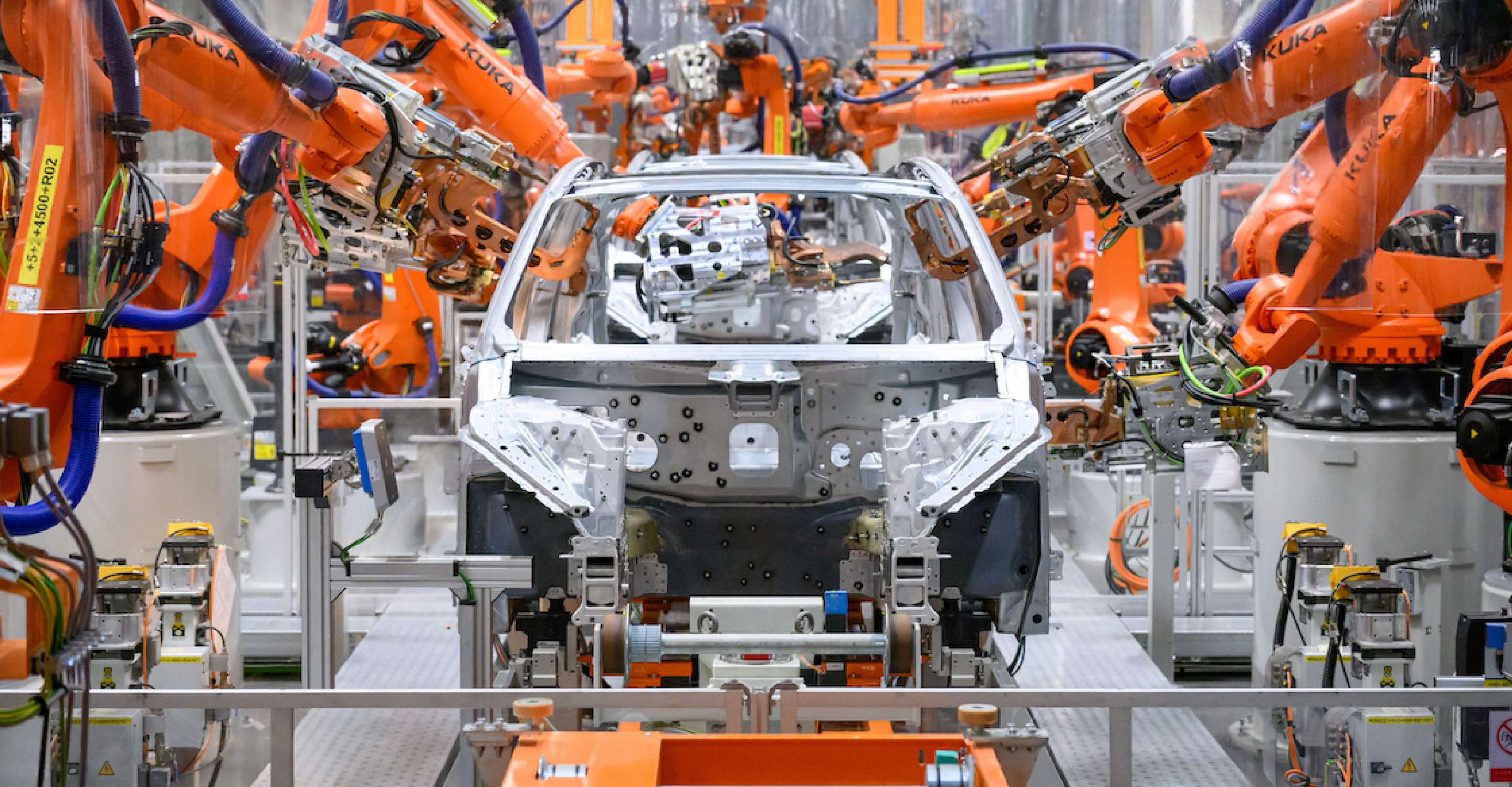 奥迪一汽新能源公司长春生产基地焊装车间焊接自动化率达100%